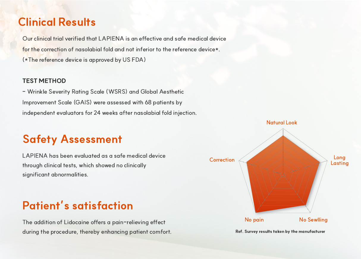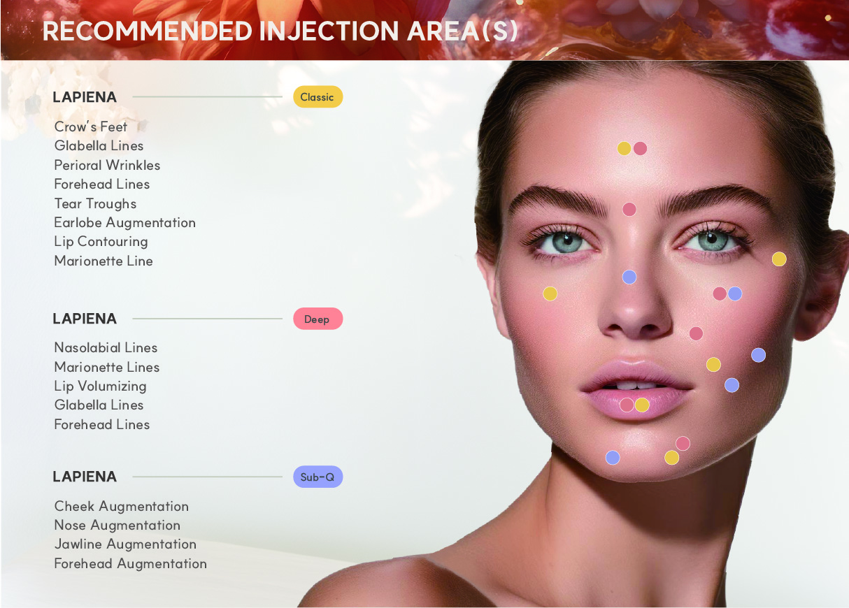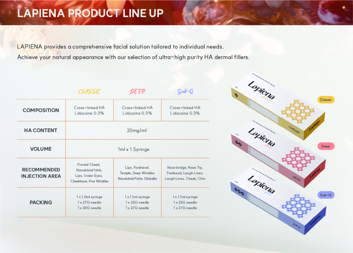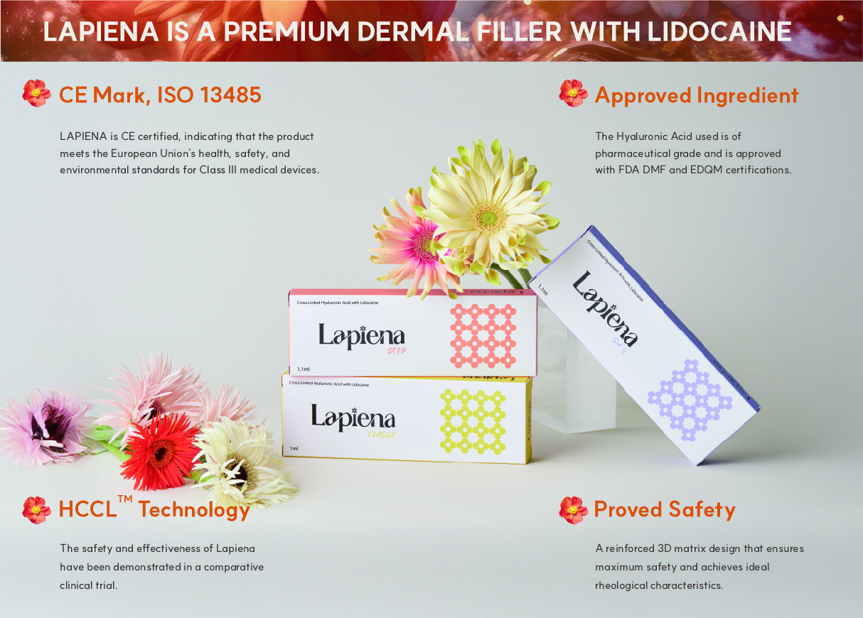 Lapiena is a premium HA filler with lidocaine that boosts elasticity, restores volume, and smooths wrinkles for firmer, younger-looking skin.